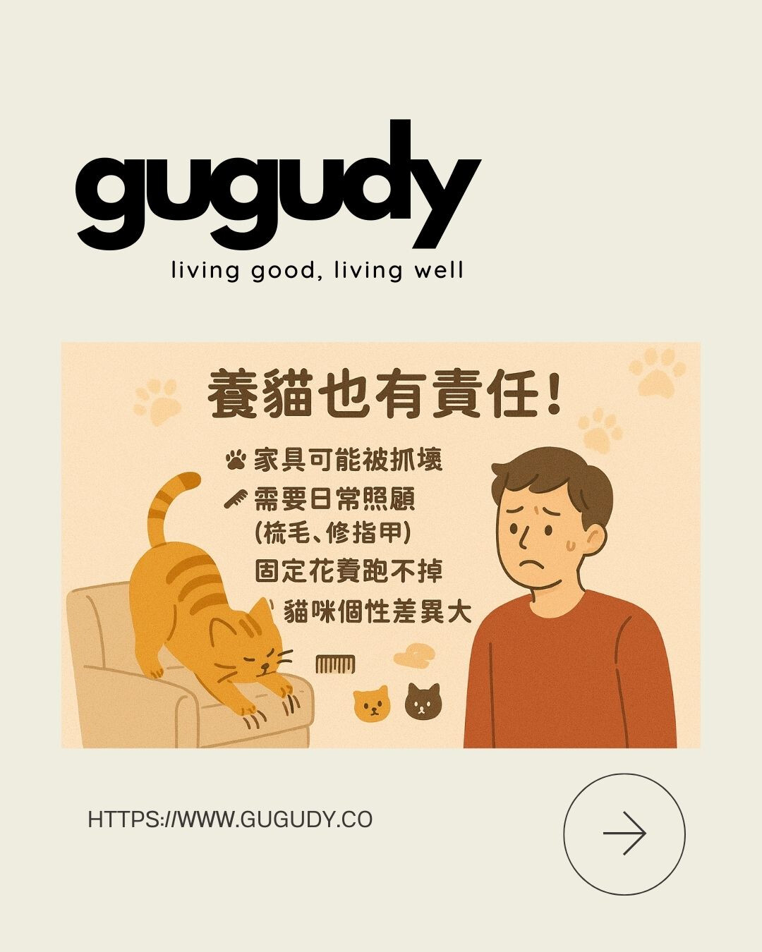 🐾 家具可能會被磨爪、跳上跳下破壞