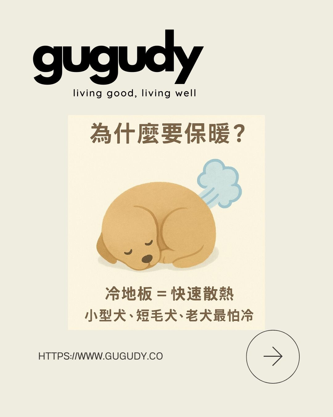 狗狗整天都貼著地面,磁磚或木地板會讓他們迅速變冷。