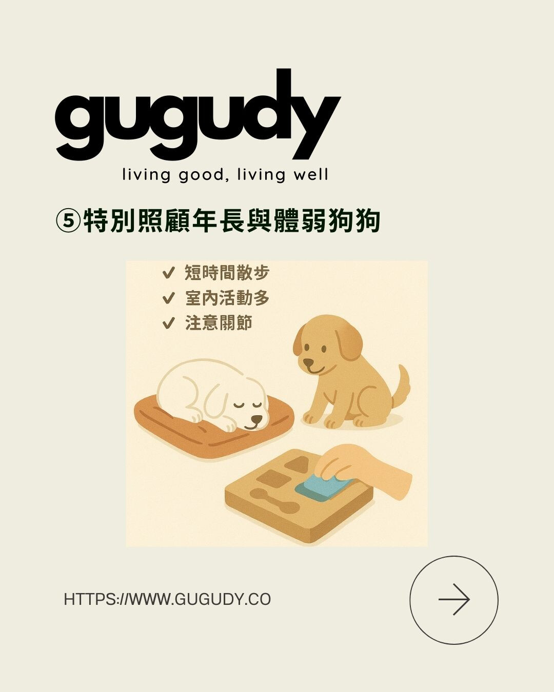 ⑤ 特別照顧年長與體弱狗狗