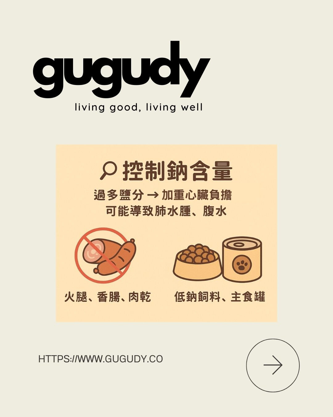 ✅ 選擇低鈉飼料、主食罐或經獸醫建議的處方飼料