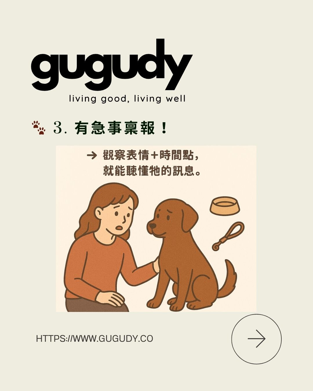 他們可能會輕推你、盯著你看,像是在提醒:「該帶我散步囉!」或「我餓了~」