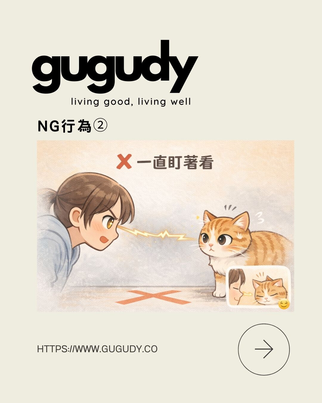 👉 如果不小心對上眼,請自然移開視線,或緩慢眨眼,讓貓咪知道你沒有敵意。